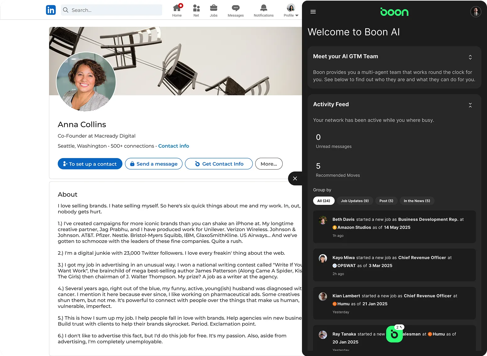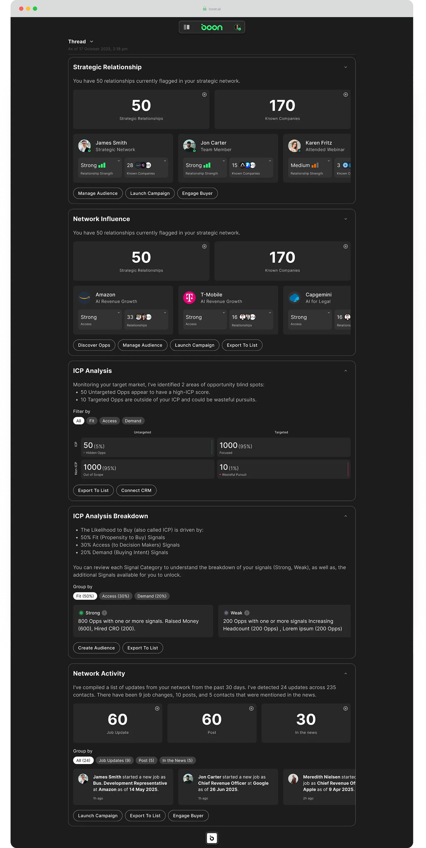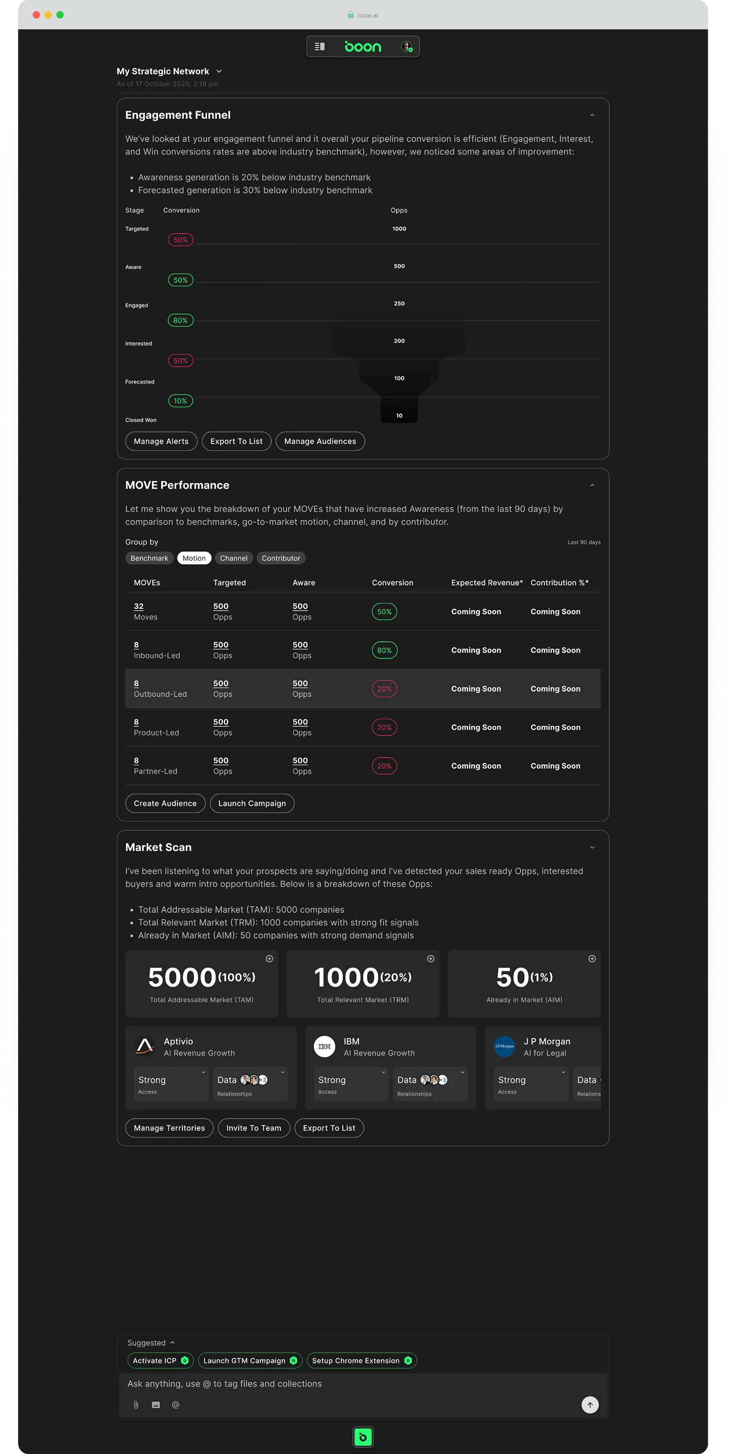 With Boon, Aptivio expanded into new galaxies. The design systems, workflows, and UX philosophies I contributed to in Aptivio directly fueled Boon's birth. Dynamic audience logic, multi-touch orchestration, and buyer engagement principles were all foundations I helped build.